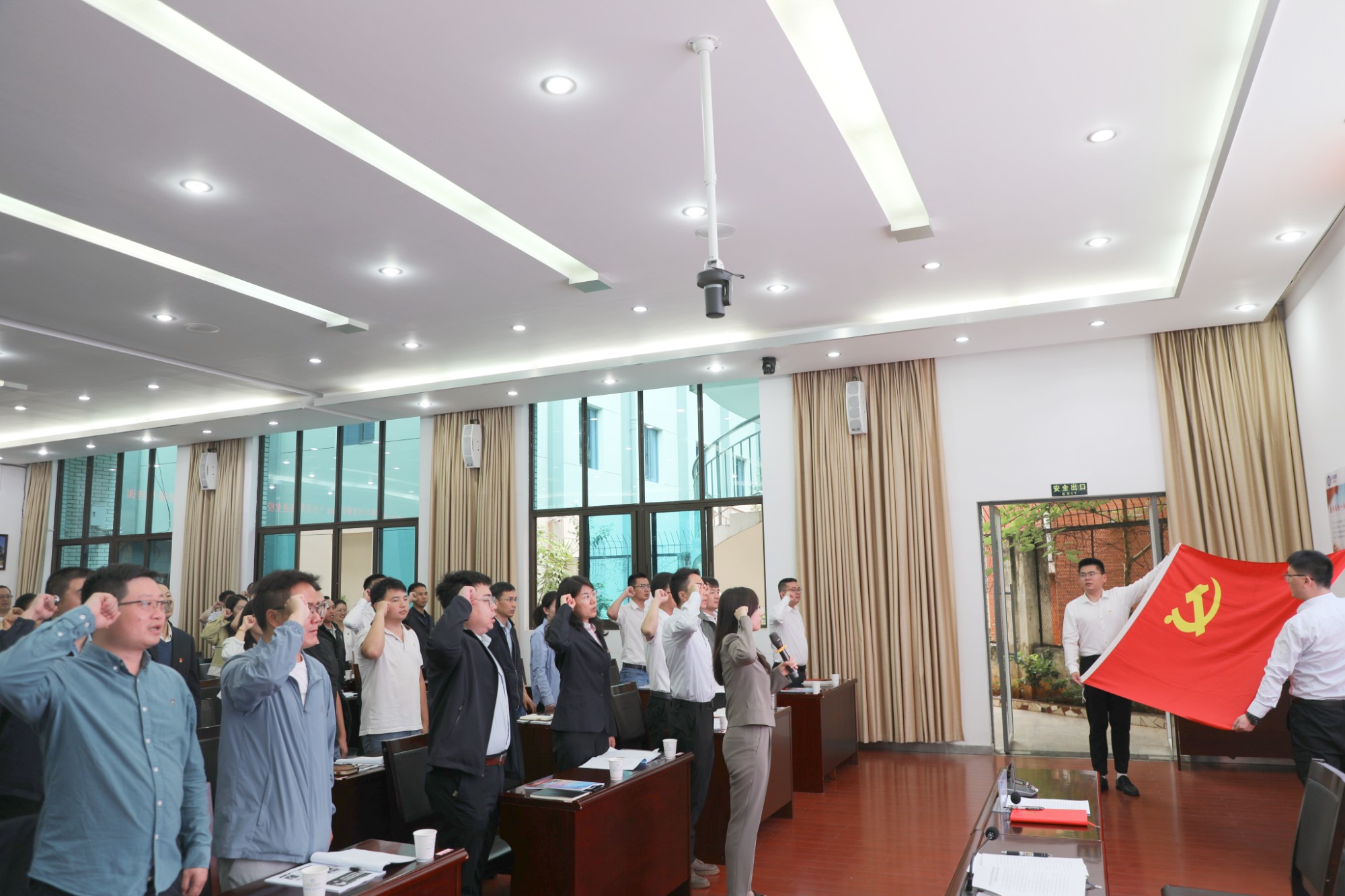 开班仪式上,全体参培人员共同唱响了《中华人民共和国国歌》,并庄严重温了入党誓词。