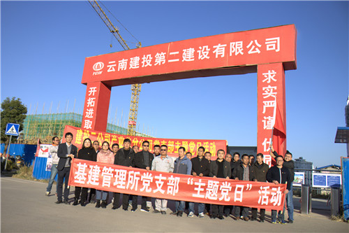 12月13日下午,公司建设产业化分公司党支部联合宜良县住建局基建管理所党支部,在宜良县兴安楼建设项目(蓬莱派出所)开展创建“红色工地”主题党日活动。宜良县住建局局党办主任于双举,基建管理所党支部书记、所长周爱民,基建管理所副所长吴红梅,公司建设产业化分公司党支部和宜良县住建局基建管理所党支部全体党员参加。