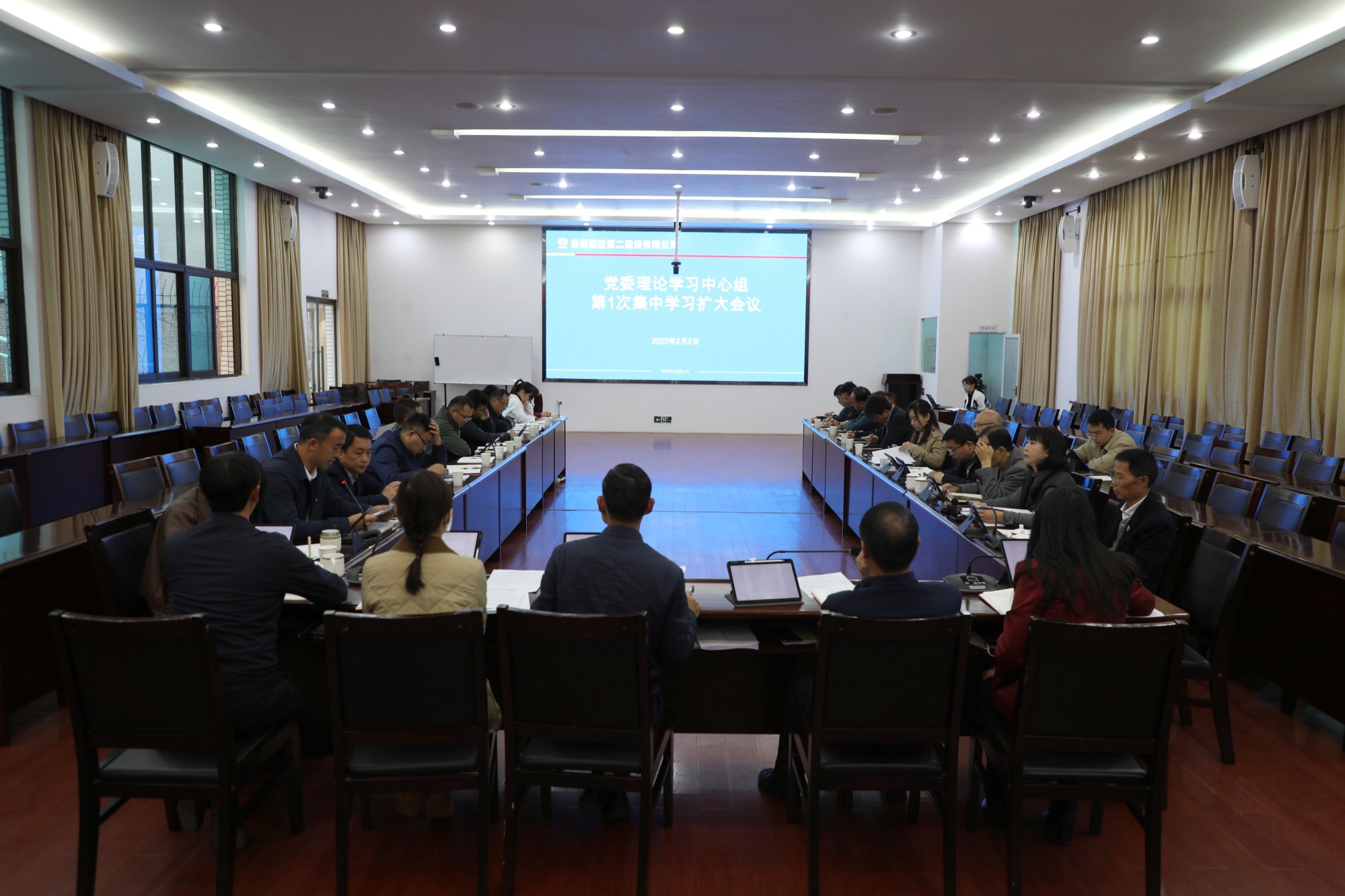 2月5日上午,公司党委召开2023年理论中心组第1次集中学习扩大会议,公司领导班子、扩大班子成员,职能部门负责人参加会议,会议由公司党委副书记、董事长陈定华主持。