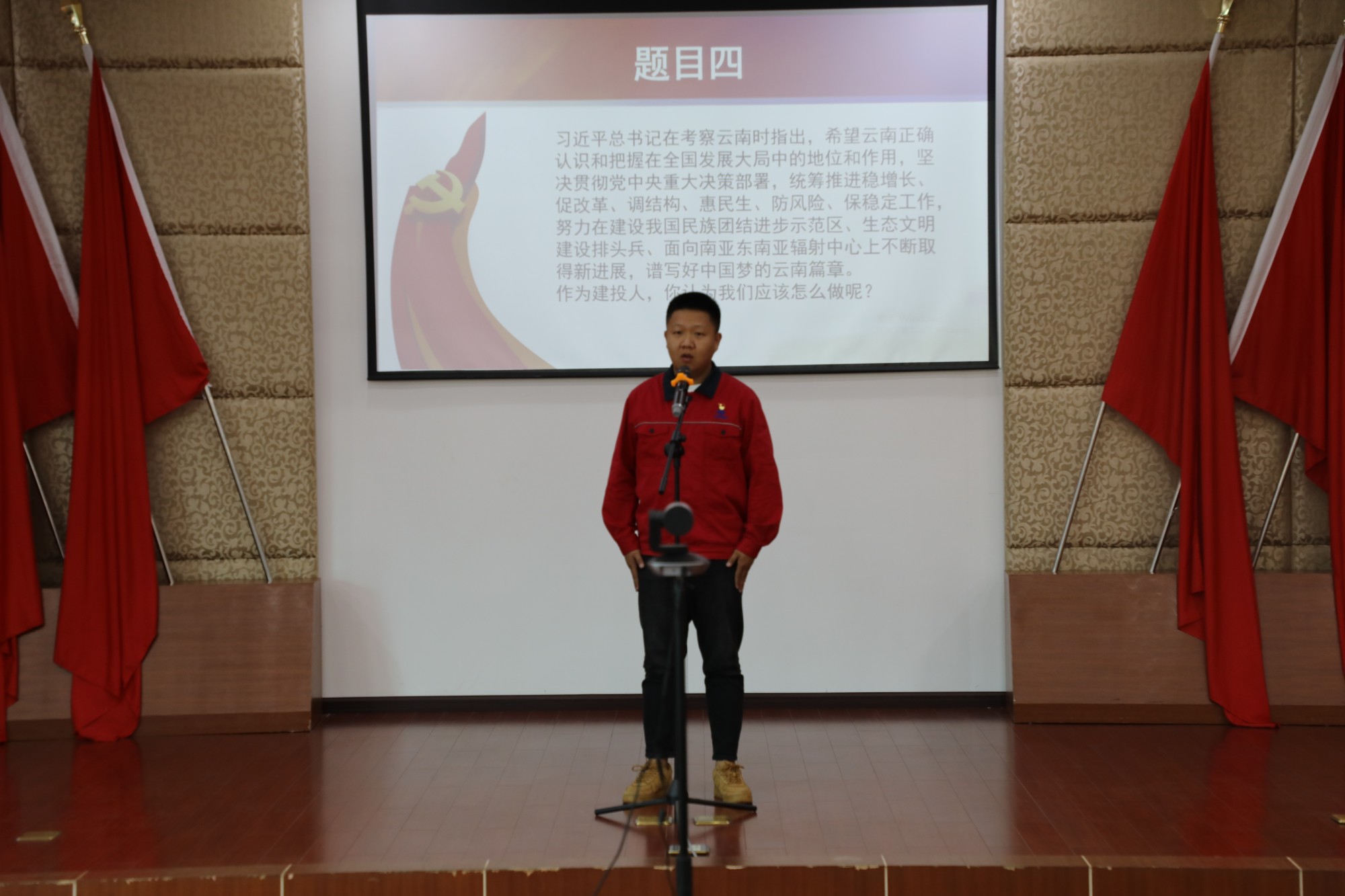 6月7日下午,由公司党委主办,公司工会、团委承办的“喜迎二十大 建功新时代”主题演讲比赛决赛在二楼会议室举办。本次比赛特邀云南省演讲学会副会长、硕士生导师、演讲教育培训专家马克强教授作为专业评委,公司党委委员、工会主席胡云红,公司年轻副总经理、项目总承包部党支部书记、经理龙为华,公司董事会秘书、战略发展部经理赵高仲,安全总监罗雪刚出席比赛并担任评委。