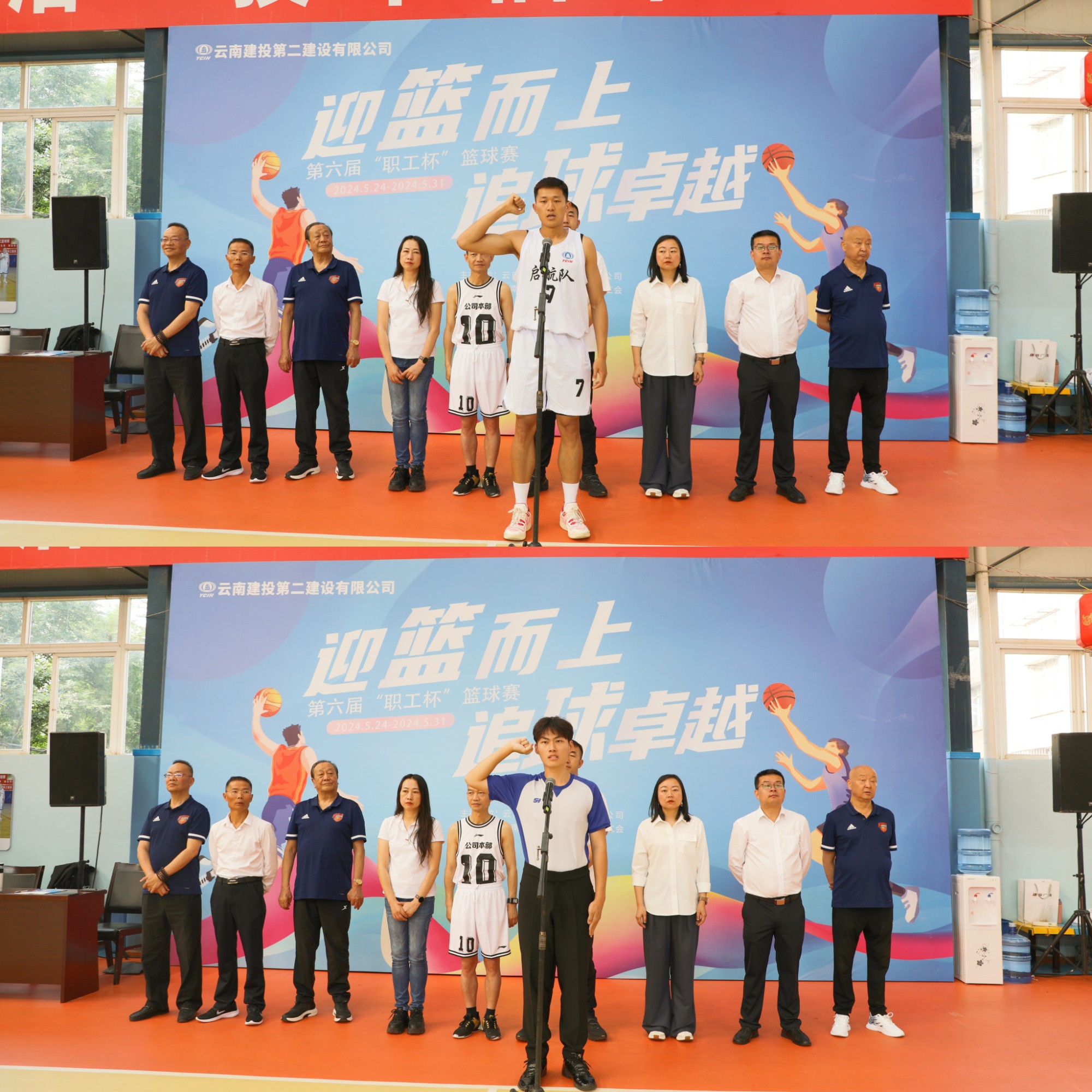 公司党委委员、董事、副总经理(主持工作)臧庆泽致开幕词。他表示,举办“职工杯”篮球赛是公司历来的传统,篮球运动不仅能够锻炼身体、强健体魄,更能够培养团队协作、拼搏进取的精神。通过举办篮球比赛等体育活动,进一步丰富职工的业余生活,增强团队凝聚力,提升公司的整体形象;充分激发职工热爱运动、顽强拼搏、团结协作的精神,营造积极健康的企业氛围,努力打造“幸福二建”。希望全体队员,本着“友谊第一、比赛第二”的宗旨,赛出水平、赛出风格、赛出精彩,将比赛中团结拼搏、奋勇争先、永不言弃的精神转化为干事创业的强大动力,为公司发展注入澎湃动力。