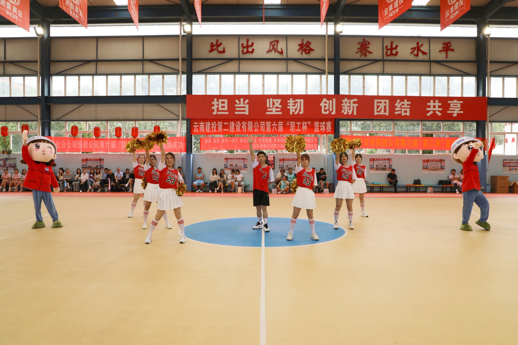 特别编排的二建专属啦啦操,还有知行兄妹人偶的精彩出演,得到了热烈的掌声和尖叫,充分鼓舞了士气,瞬间点燃了全场。
