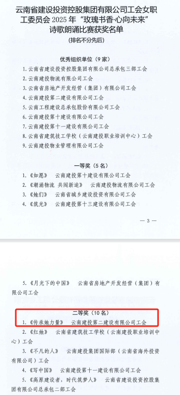 近日,集团工会公布了2025年“颂党恩·咏经典·传家声”亲子诵读活动及“玫瑰书香·心向未来”女职工诗歌朗诵比赛结果,由公司工会报送的视频作品《祖国颂歌》《传承她力量》从近百个作品中脱颖而出,分别荣获一等奖、二等奖。
