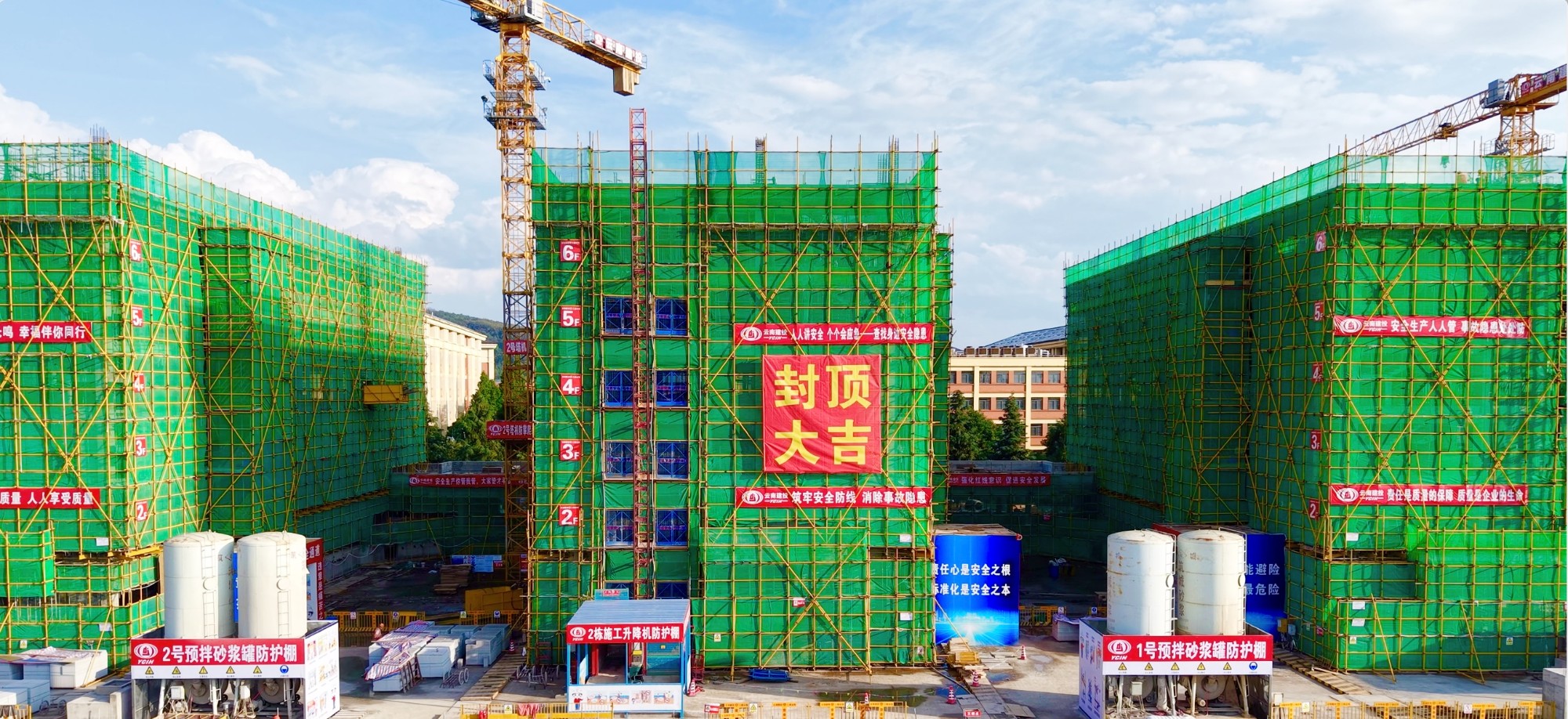 5月20日,随着最后一栋主楼屋面混凝土浇筑完成,由第一直管部承建的云南大学呈贡校区梓苑(1#-3#学生宿舍)项目实现全面封顶。