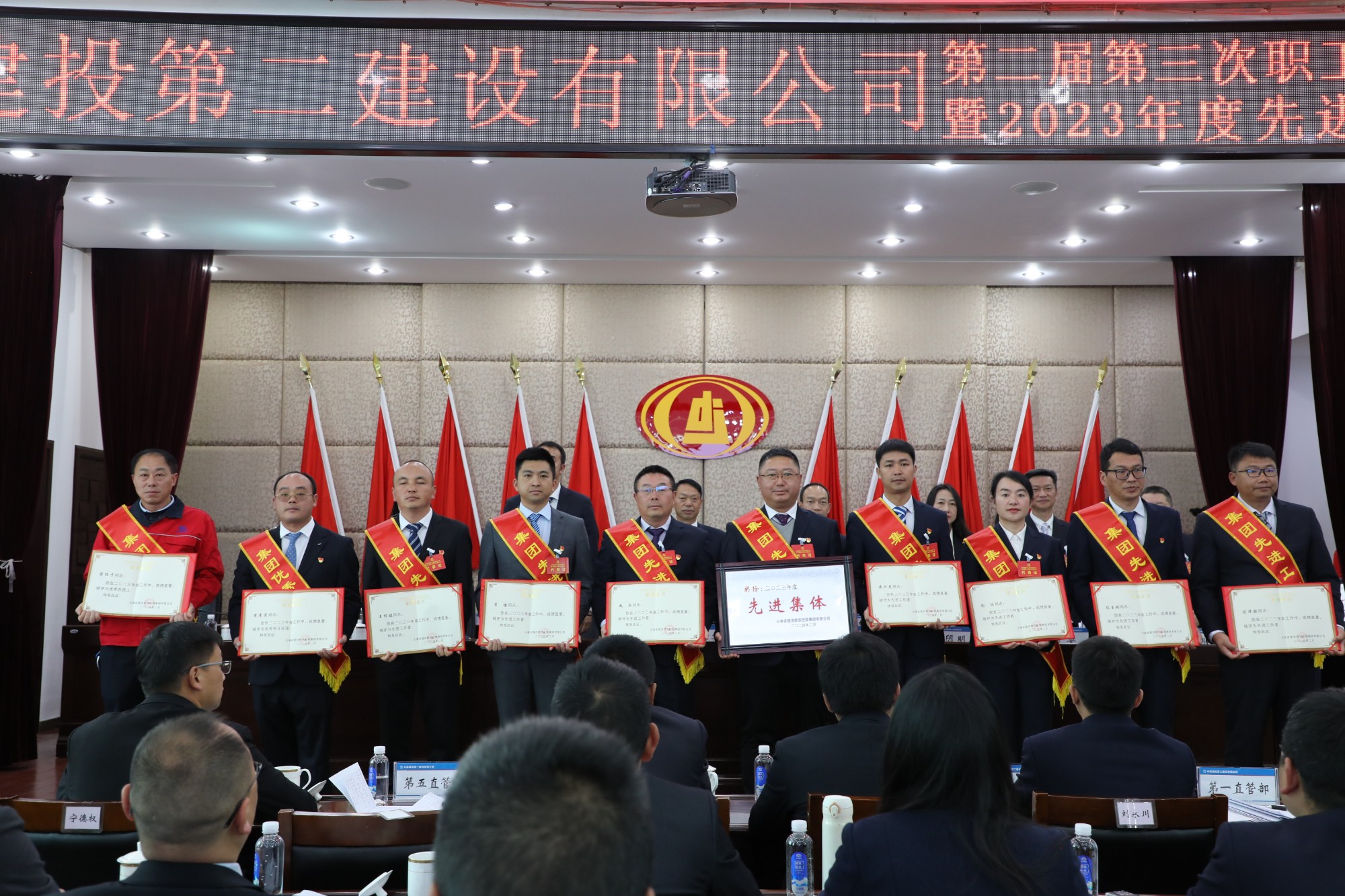 祥龙迎春,华章日新。2月26日,公司第二届第三次职工代表大会暨2023年度先进表彰会在一楼会议室胜利召开,来自各基层单位各个岗位的138名职工代表齐聚一堂,全面学习集团二届一次职代会精神,认真履行代表职责,为公司发展建言献策。会议特邀退休老领导4人、青年骨干19人列席。