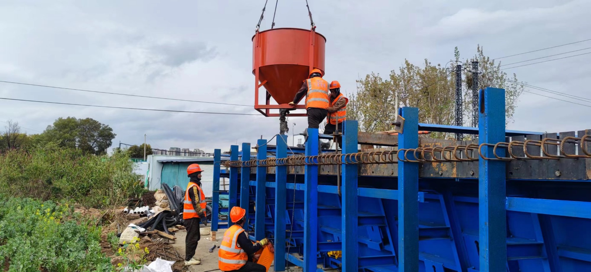 据悉:官渡区虾坝河段综合整治工程项目共有18片箱梁,桥梁结构形式为1*25米预应力砼(后张)箱梁,结构体系为两端简支,梁高1.4米,其中边梁2片,中梁16片。本次灌注箱梁为1-2#箱梁。