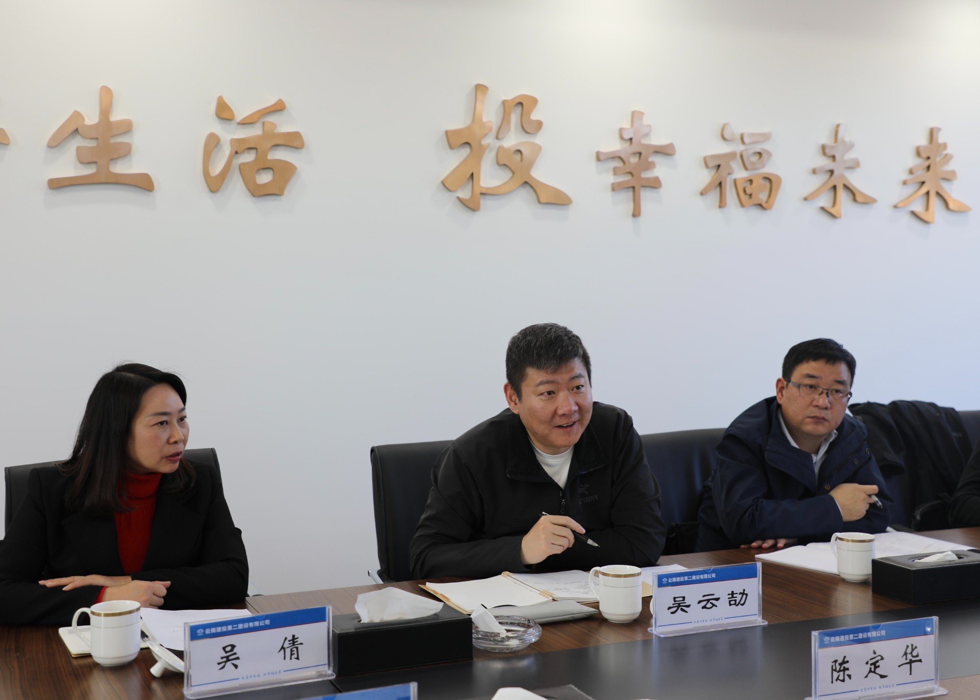 12月15日下午,中冶地质西南公司党委书记、董事长、总经理吴云劼率队到公司交流座谈,公司党委副书记、董事长陈定华,党委书记、副董事长董学友,年轻副总经理彭曦,总工程师陈强,相关职能部门及基层单位负责人参加会议。会议由董学友主持。