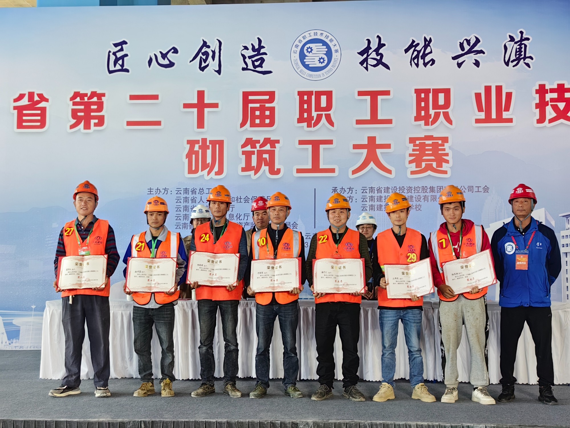 比技能,铸匠心。10月25至26日,云南省第二十届职工职业技能大赛砌筑工大赛在国际供应链示范中心项目成功举办。公司选派第一直管部两名产业工人参赛,其中杨有坤在30名选手中脱颖而出,荣获第六名的好成绩。