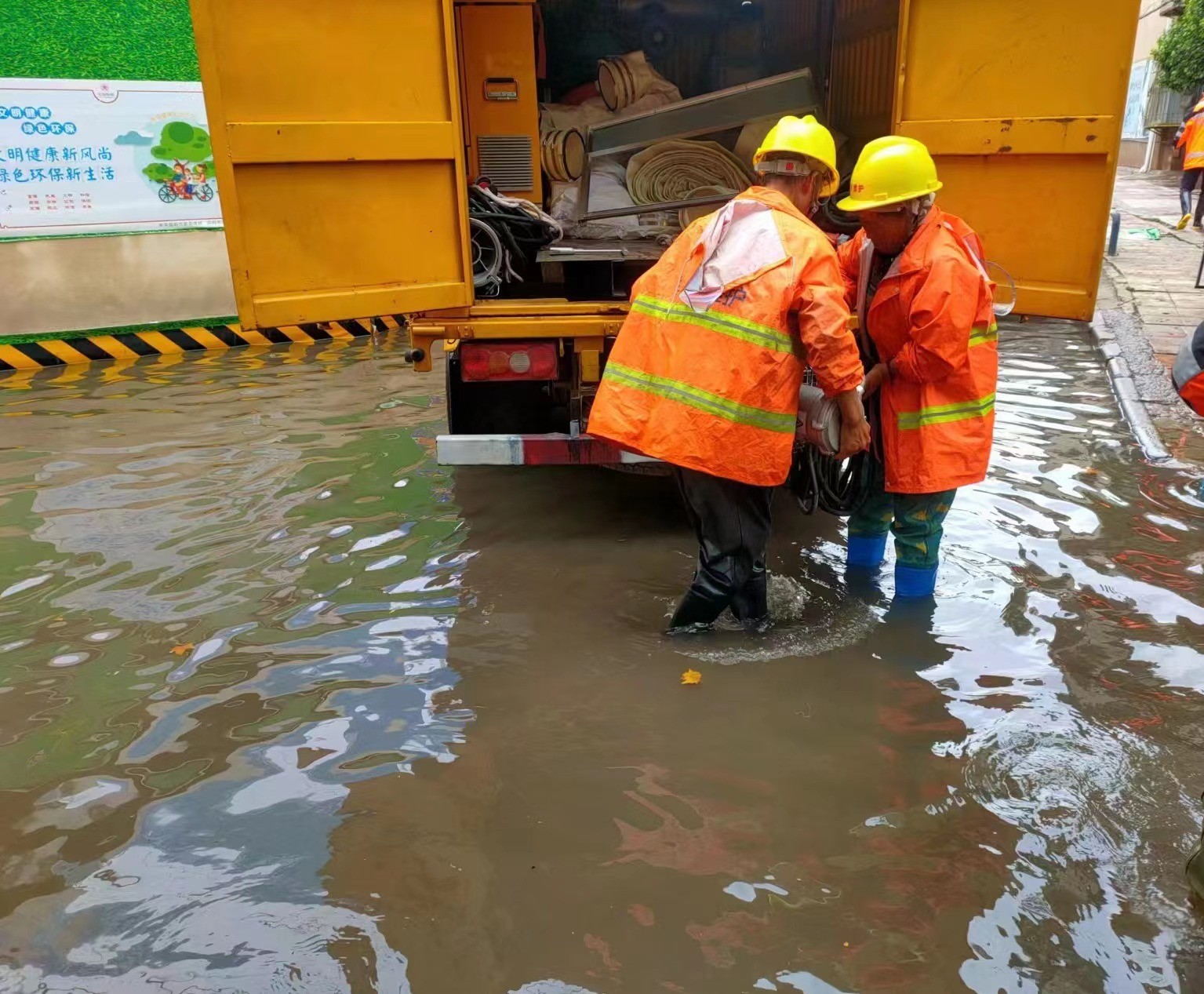7月27日夜间至28日清晨,昆明自北向南出现强降雨天气,局部大暴雨,昆明主城二环内平均降雨量90毫米。路桥分公司2023-2025年度主城区公共排水管渠维护作业项目部按照上级部门安排部署,紧急启动救援作业,通宵处置各淹积水点,努力解决昆明市西山区道路淹积水问题。