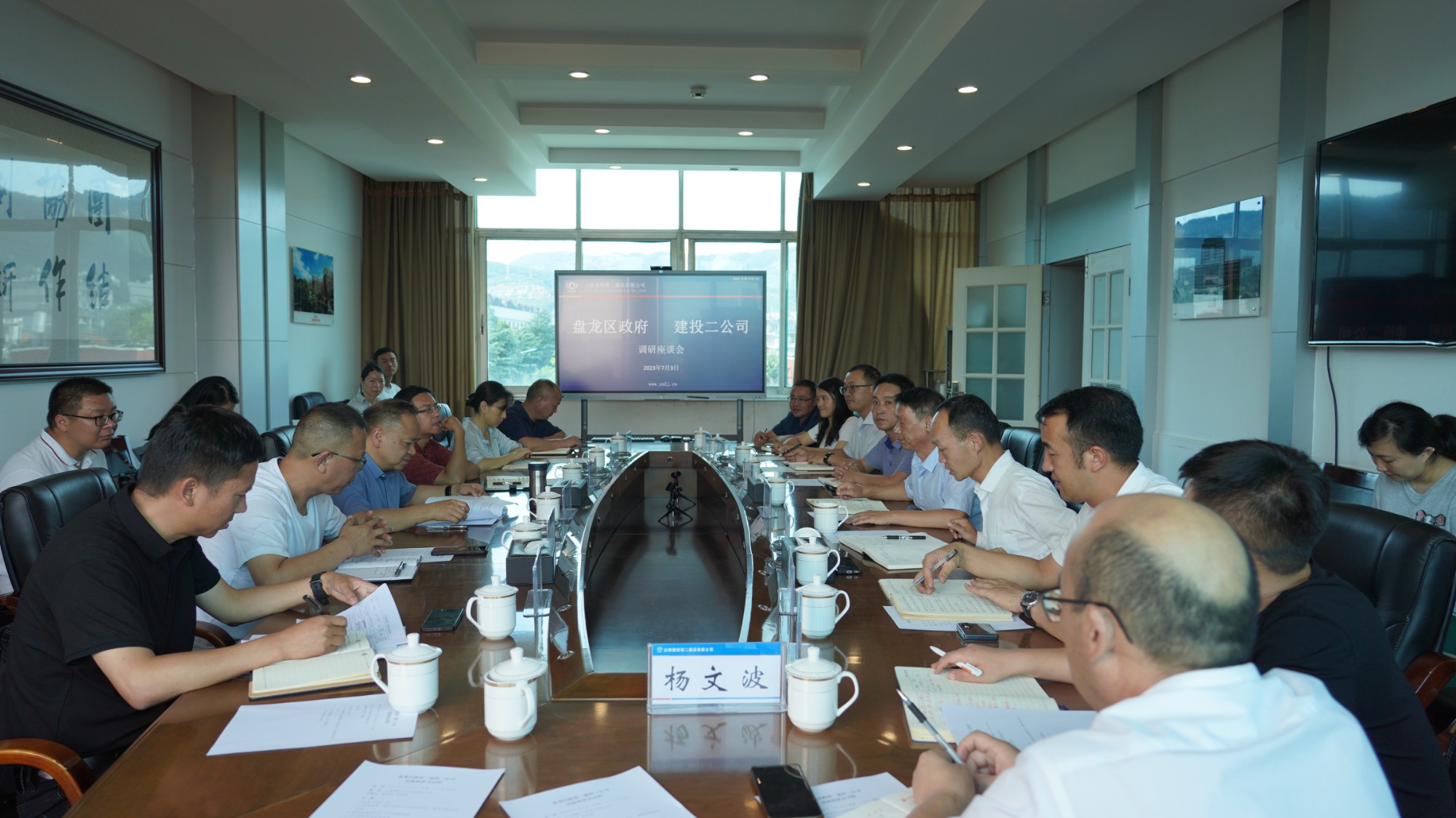 7月3日下午,盘龙区委副书记、区长高庚一行到公司开展调研座谈,公司党委副书记、董事长陈定华,党委副书记、副董事长、总经理董学友出席会议,会议由董学友主持。