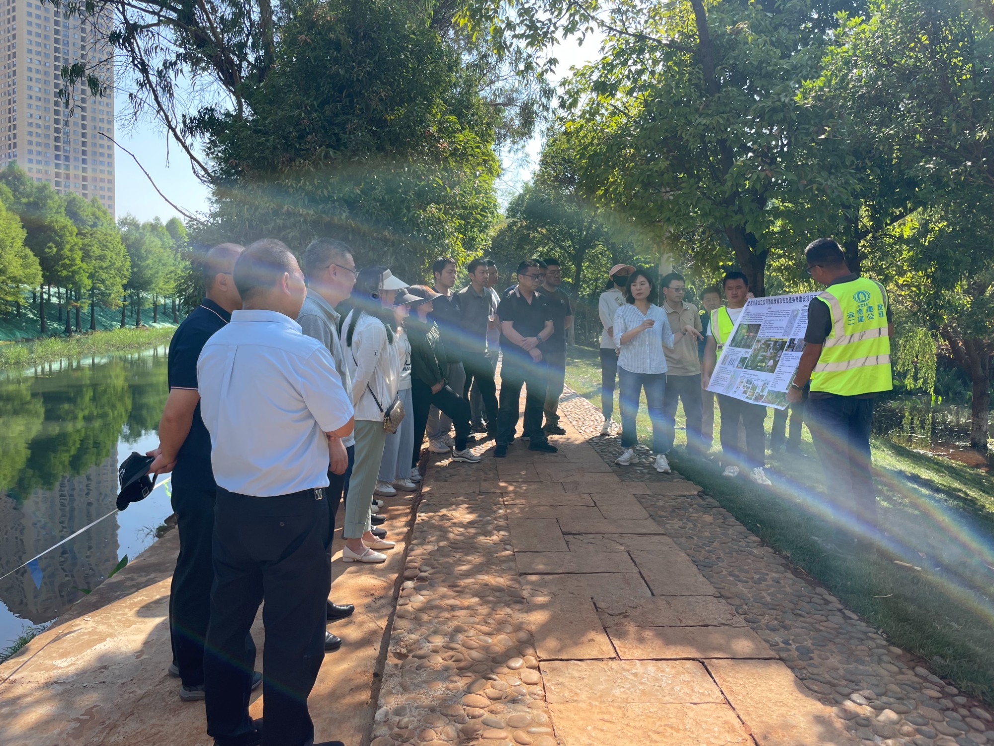 5月30日上午,盘龙区委书记沃磊带领盘龙区水务局长一行到第五直管部承建的盘龙江滨河海绵绿廊及生态健身带建设项目进行调研,项目经理陪同。