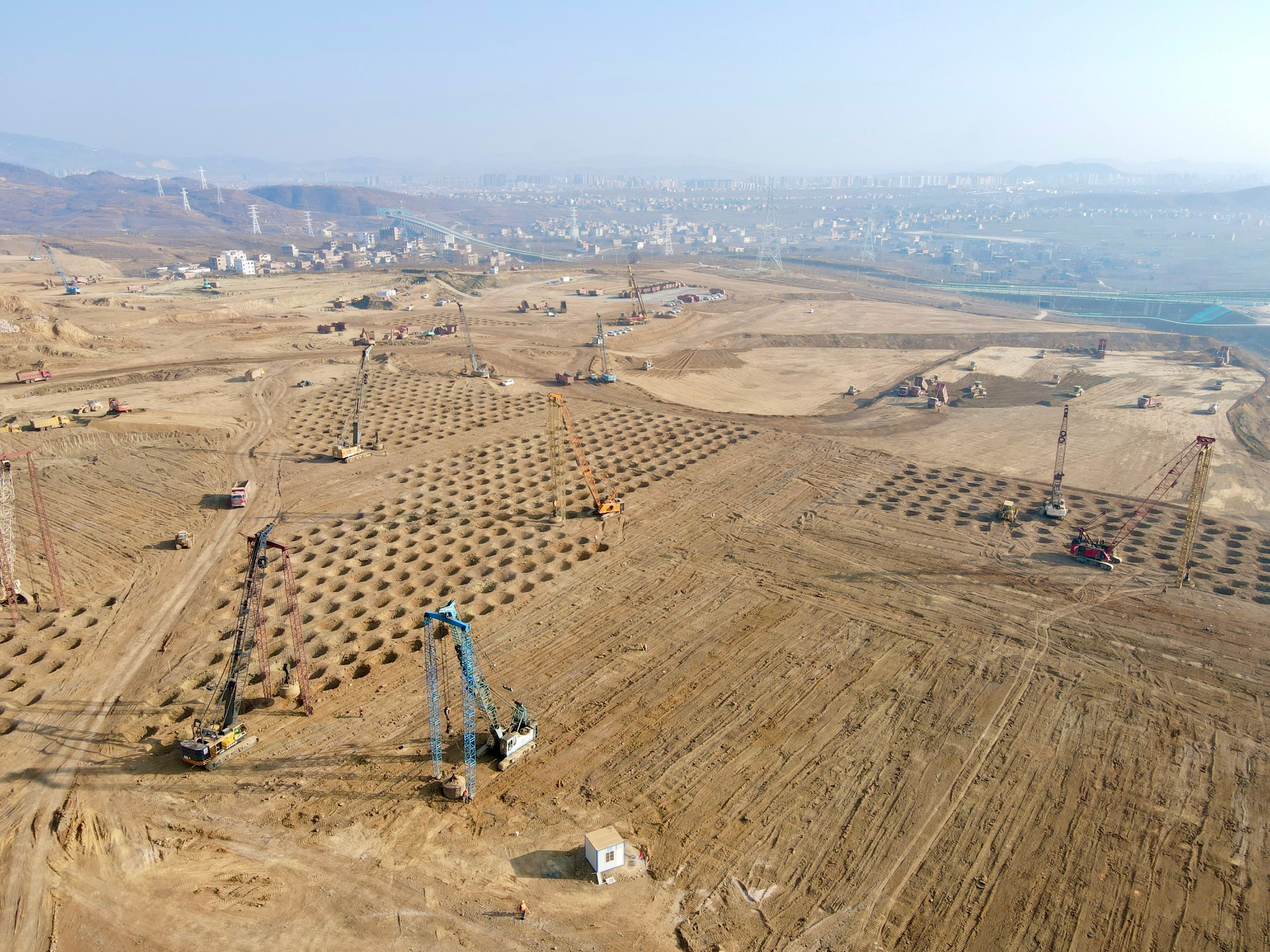 该项目工期紧、任务重。自2022年12月5日开工以来,为圆满完成施工任务,项目部提前谋划、认真落实,按照“四保一控一树”实施细则要求,精准投入施工所需的机械和人力,采取管理人员两班倒工作制,现场24小时作业。经过69天的艰苦奋战和360挖机32台、推土机11台、压路机15台、装载机3台、渣土车65辆、强夯机15台的投入,项目土石方及强夯工程顺利完成了超300万立方米土石方、30万平方米强夯。