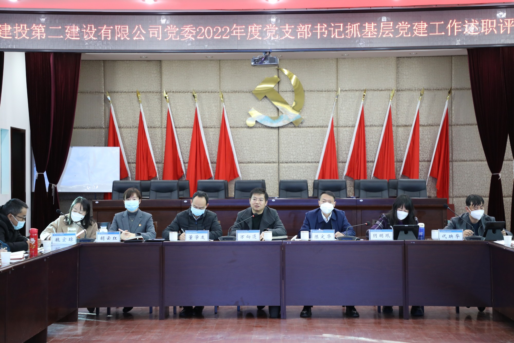 1月11日下午,公司党委在一楼会议室召开2022年度党支部书记抓基层党建工作述职评议考核会,公司党委书记、副董事长万向遵,党委副书记、董事长陈定华,党委副书记、副董事长、总经理董学友,党委委员、总经济师阴明珉,党委委员、工会主席胡云红,党委委员、财务总监代映华,党委委员、纪委书记魏宏琼出席会议并担任考核组成员,公司所属各党支部负责人、党委工作部全体人员参加会议。会议由党委工作部部长主持。