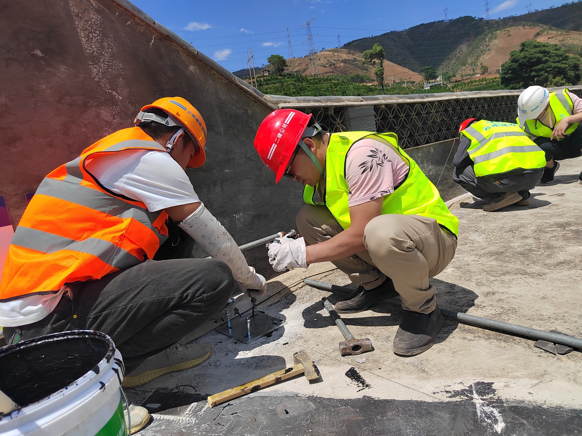 在电站的建设过程中,项目团队充分落实“典型引路法”借鉴擅长建筑领域的施工方法进行分布式光伏建设施工。借鉴“型钢柱柱脚灌浆技术”施工支架立柱柱脚保护层,并将成果转化为专利成果“一种用于钢柱柱脚灌浆料施工的工具”,目前专利局已经完成受理;借鉴“玻璃幕墙密封技术”及“扳机式木工夹”解决光伏组件间的拼缝及漏水问题。类似的“典型引路法”的运用,在项目实施的现场比比皆是。