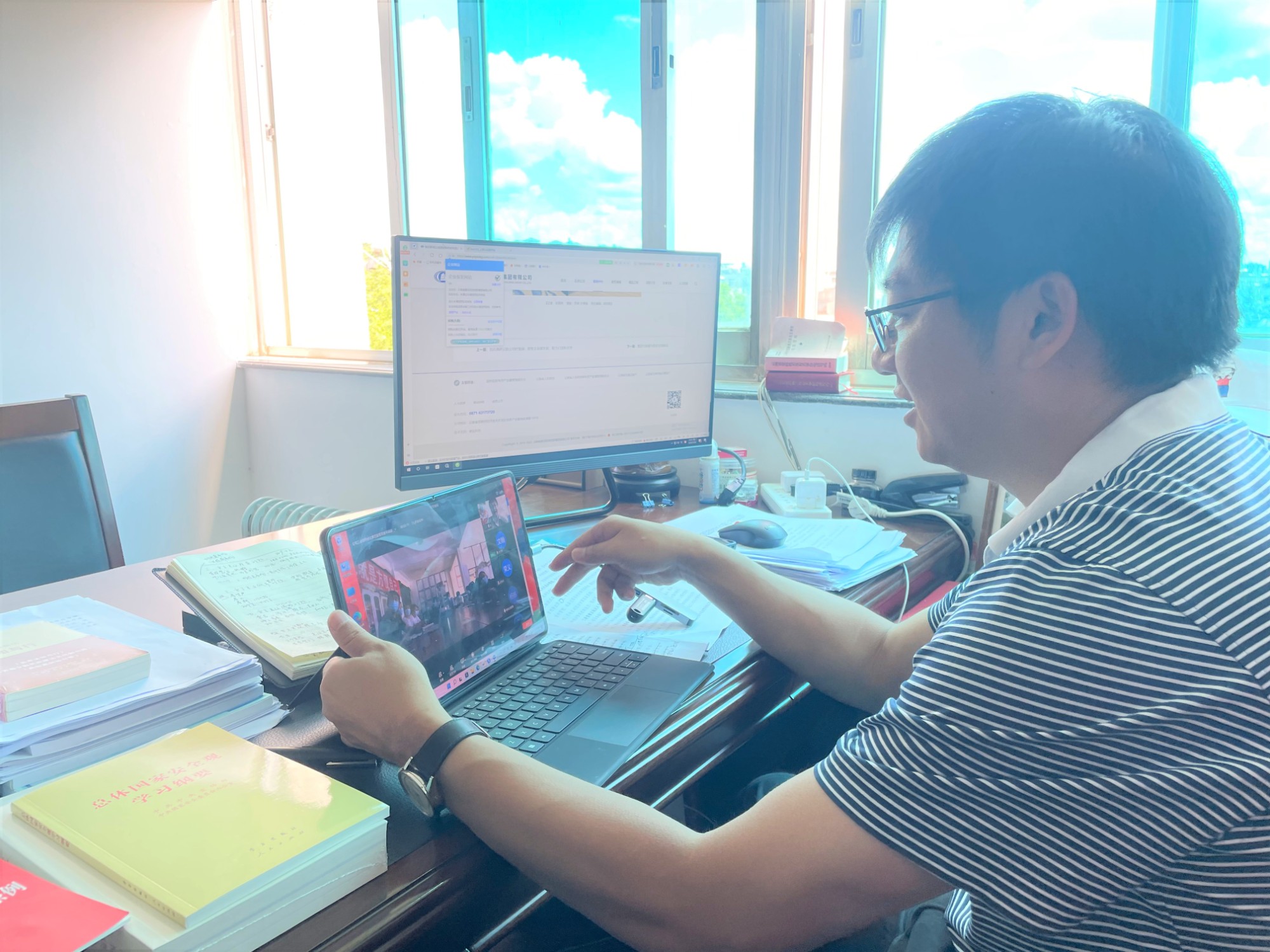 7月26日下午,公司党委书记、副董事长万向遵,党委委员、工会主席胡云红,通过钉钉视频,同参与金平县方舱医院、金平县人民医院、金平县国门文化交流中心等项目建设的公司第五直管部、第十二直管部、第一安装分公司的项目一线职工连线,传达对他们的牵挂和关怀。
