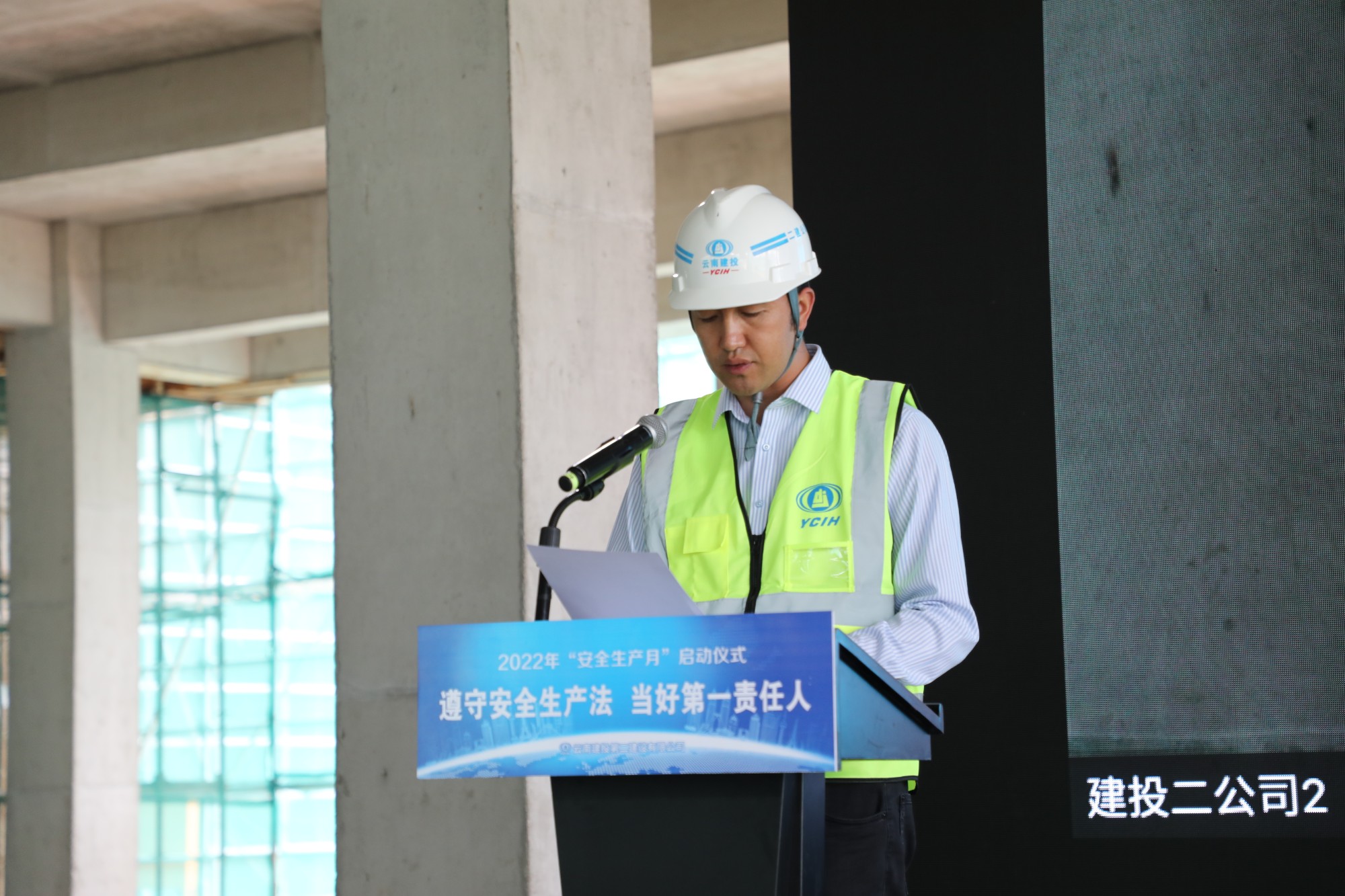 仪式上,与会领导为农民工代表发放安全防护用品;安全监督管理部副经理宣贯了公司《2022年“安全生产月”活动方案》;龙江小学项目经理代表公司全体项目经理作了安全倡议。