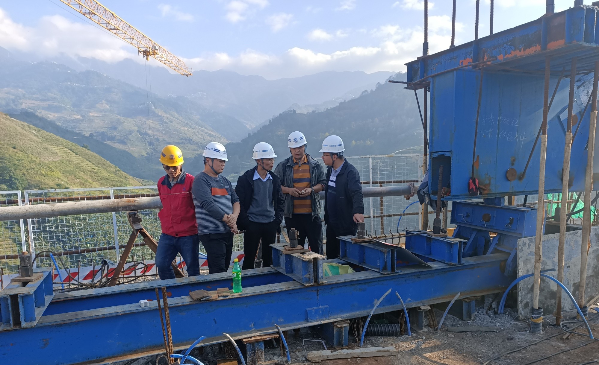 陈强指出,一是现场的托架预压以及挂篮预压方式要与施工方案一致。二是人工挖孔桩的施工,要求工长必须做到现场盯守施工。三是对于剩余的高边坡施工,要加强现场监督。四是针对小蚌嘎特大桥及小蚌嘎2号大桥,菱形挂篮施工,在施工过程中针对挂篮移动工序要进行验收检查。五是针对墩柱施工使用的安全爬梯,必须采用施工梯笼。