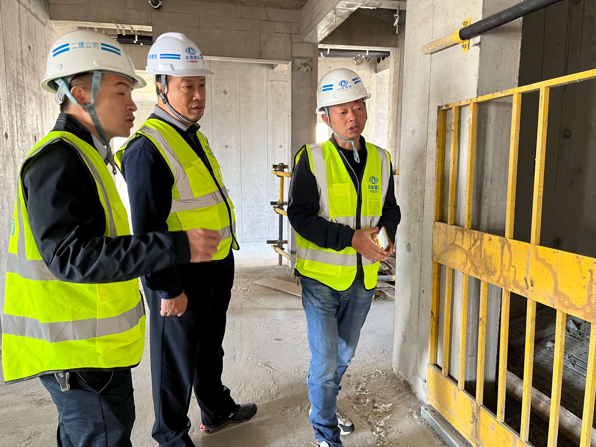 尚有清一行深入施工现场,了解项目施工情况,重点针对现场安全文明施工、安全防护等进行实地检查。
