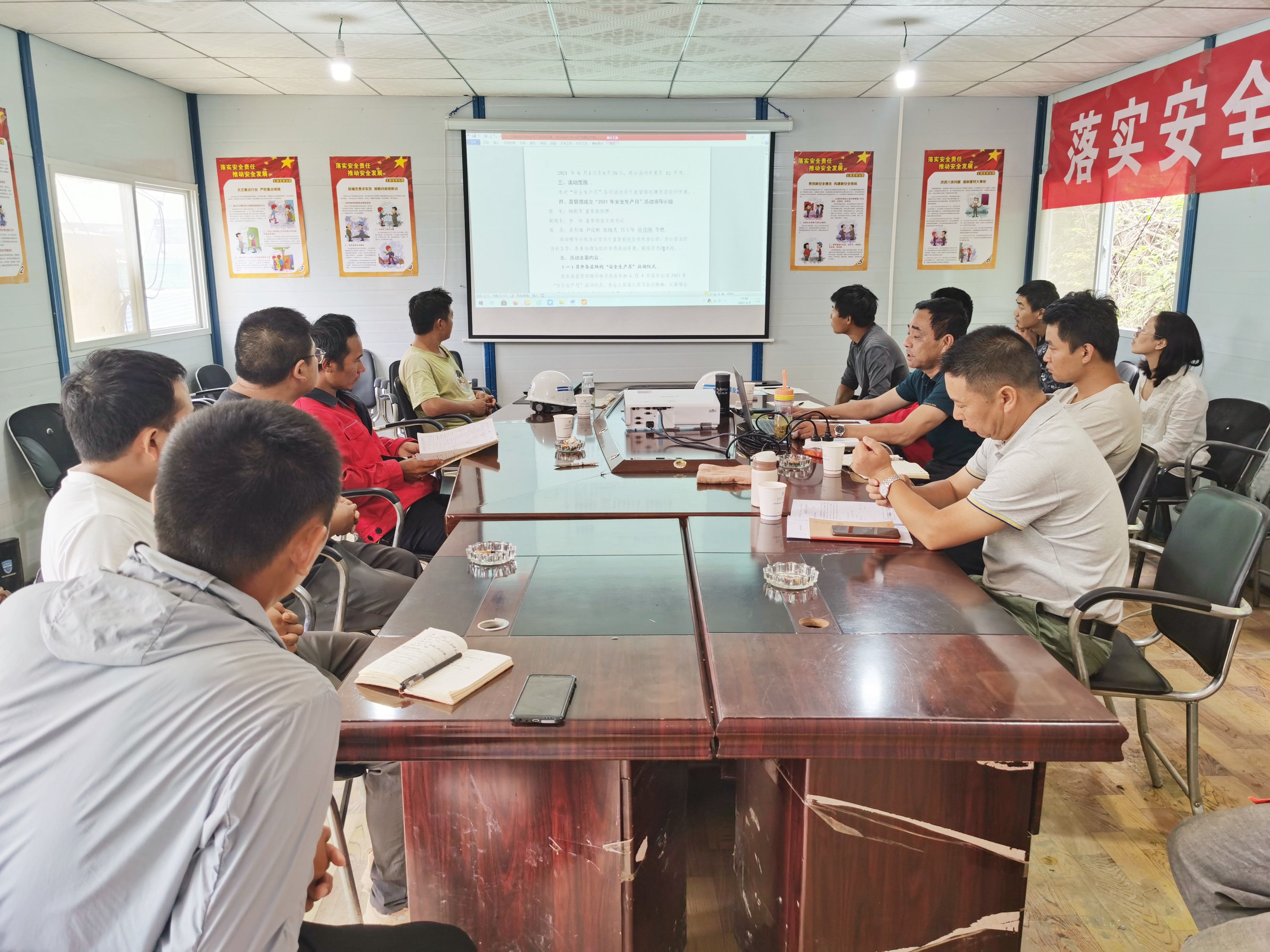 腾冲项目项目经理带领全员学习了公司2021年“安全生产月”活动方案,并强调到:项目要严格落实各项整改任务,深入排查安全风险隐患,扎实推进问题整改。
