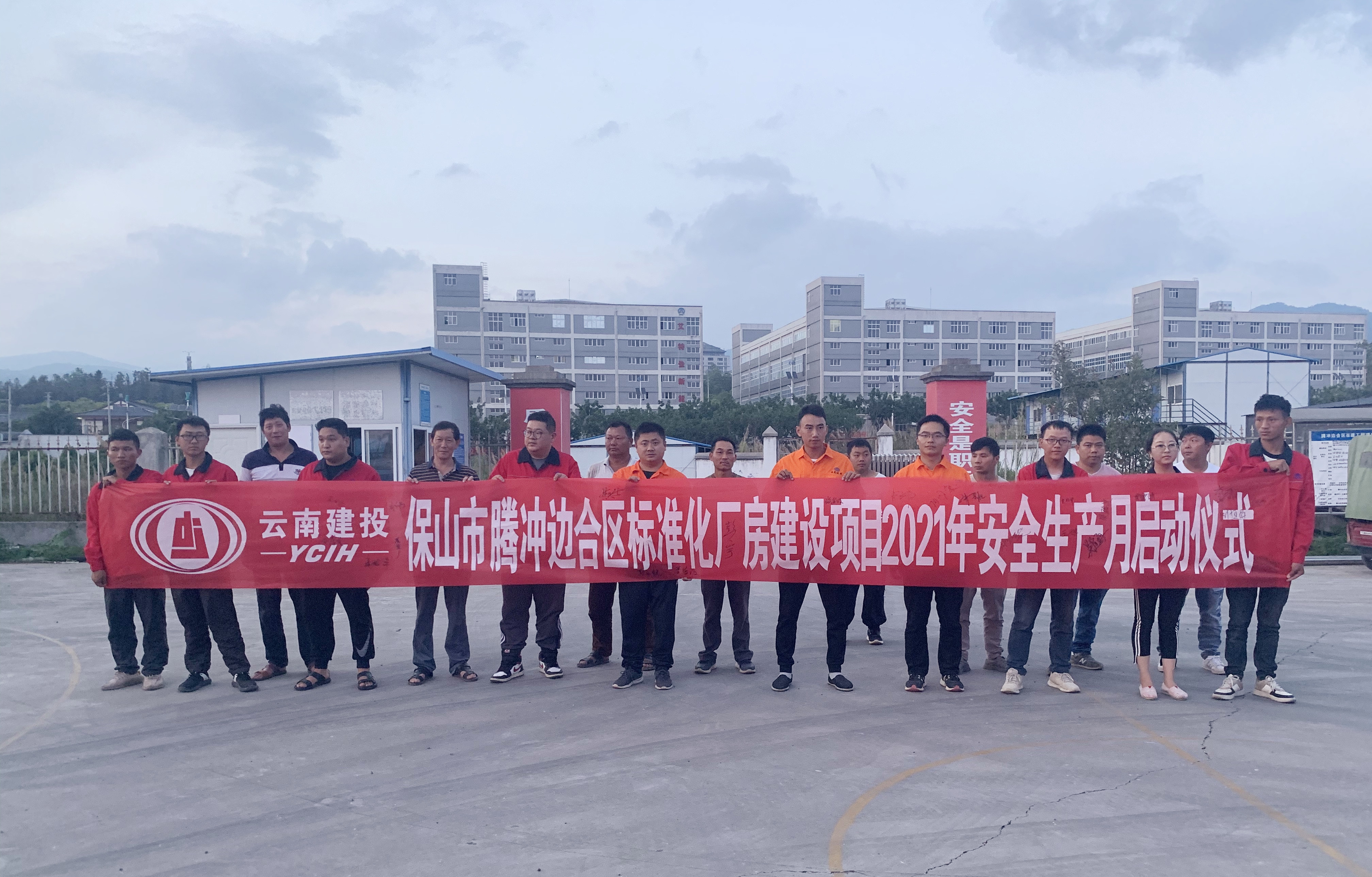 6月7日下午,第十七直管部腾冲标准化厂房项目与七公司生活居住区及办公区项目共同举办2021年“安全生产月”启动仪式。两个项目部劳务班组及全体管理人员参会,第十七直管部腾冲项目项目经理主持仪式。