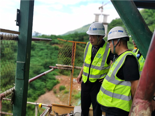 王现合一行实地检查了小蚌嘎特大桥,对项目施工进度、安全、质量及相关技术措施进行了深入了解,强调要严守安全关,严格按照施工方案进行施工,确保工程质量达标,确保完成目标任务。