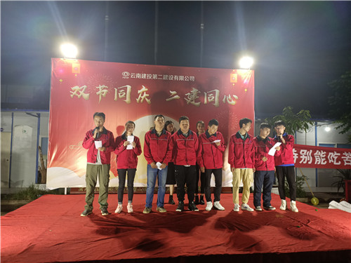 “明月几时有,把酒问青天。”晚上8点,在优美的旋律中,元绿五分部中秋晚会拉开了序幕,由项目部带来的吉他弹唱、诗歌朗诵、动听歌曲等节目纷纷展示,热闹非凡。甲方、监理等单位的相关负责人也纷纷加入了表演者行列,一首首动人的歌曲响彻云霄,让本就热闹的晚会再添了一分欢乐。