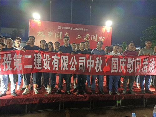9月22日,公司党委副书记、副董事长、总经理王现合,副总经理向小波,党委工作部、团委相关负责人一行前往元阳片区开展中秋国庆双节慰问活动,为项目部所有人员送去公司的关怀和温暖。同时对元绿五分部项目建设进行实地检查指导,元绿五分部项目负责人陪同。