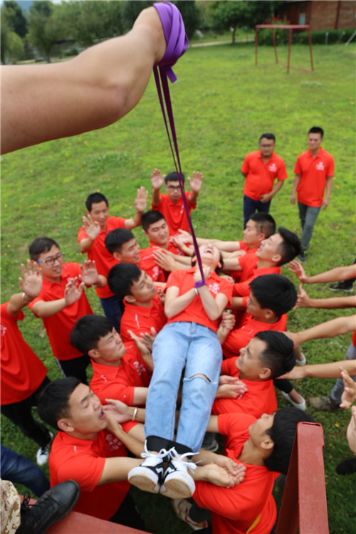 “信任背摔”教会新员工克服恐惧、勇往直前,用信任的心态相信团队中的伙伴,相互理解支持,增进团队成员之间的信任,最终达成一致目标。
