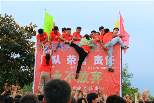 最后的翻越“毕业墙”让我们看到了新员工身上的责任和担当、奋力和坚持,新员工们互相当“基座”、做保护、拽队友,一个接一个翻越高墙,当最后一名新员工抓着上一名队友的腿被成功拉上高墙的那一刻,人群沸腾,也将此次的拓展活动推向了高潮。一整天的拓展活动让大家认识到个人潜能的无限性、团队步调一致的重要性和挑战创新的必要性,也让大家收获到了专业与效率、交流与分享、团队与荣誉、责任与担当、感动与力量。