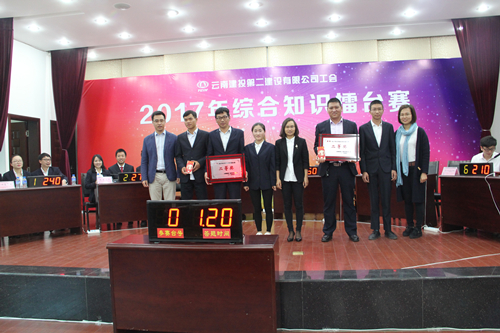 4月7日,由公司工会举办、为期两天的综合知识擂台赛在公司一楼小礼堂顺利落下帷幕。此次比赛,共有来自公司职能部门和基层单位的23支队伍参加角逐。经过4月6日的三场初赛之后,第三直管部代表队、第五直管部代表队、第九直管部代表队、第十直管部代表队、第十二直管部代表队、机关三队这6支队伍脱颖而出进入了决赛阶段。