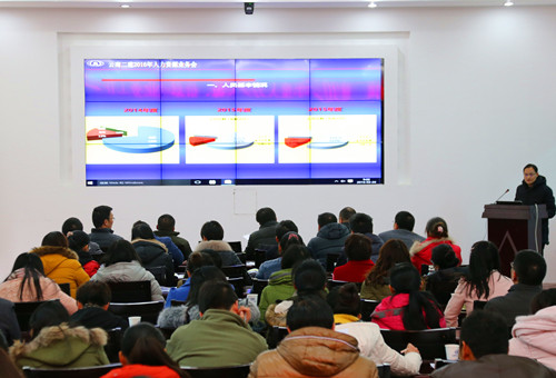 会上,公司总经理助理赵高仲、左红祥分别以PPT形式向与会人员详细介绍了公司人力资源及信息化管理工作现状,回顾了公司2015年度人力资源及信息化管理工作,认真分析了两大业务板块在当前管理过程中所存在的问题,进而提出并部署了2016年乃至今后一段时期内的人力资源和信息化工作思路与计划。