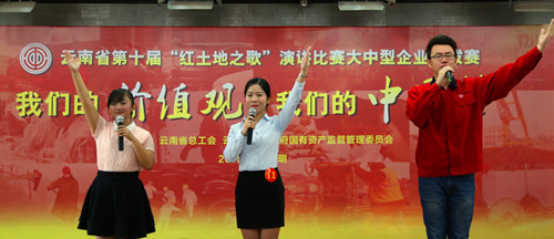 本届红土地之歌演讲比赛于24日至25日在黄土坡省工青妇干校4号楼二楼会议室举行,由云南省总工会和省国资委联合举办,共有来自全省34家大中型企业的71名选手、54个节目参加角逐,竞争激烈。集团工会选派了《沙漠里的战斗》和《妈妈的心愿》两个节目参加本届演讲比赛。在参加比赛之前,集团团委和公司团委多次组织相关人员进行排练,经过多次修改最终确定演讲稿内容,并于本月22日、23日分别在昆明滇池国际会展中心项目和四公司双河湾项目进行预演。